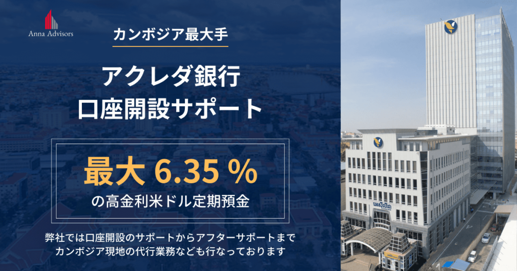 日本からでも開設可能で、日本語でのサポート付きになります。海外銀行口座開設なら、米ドル資産が築けるカンボジアがおすすめです。