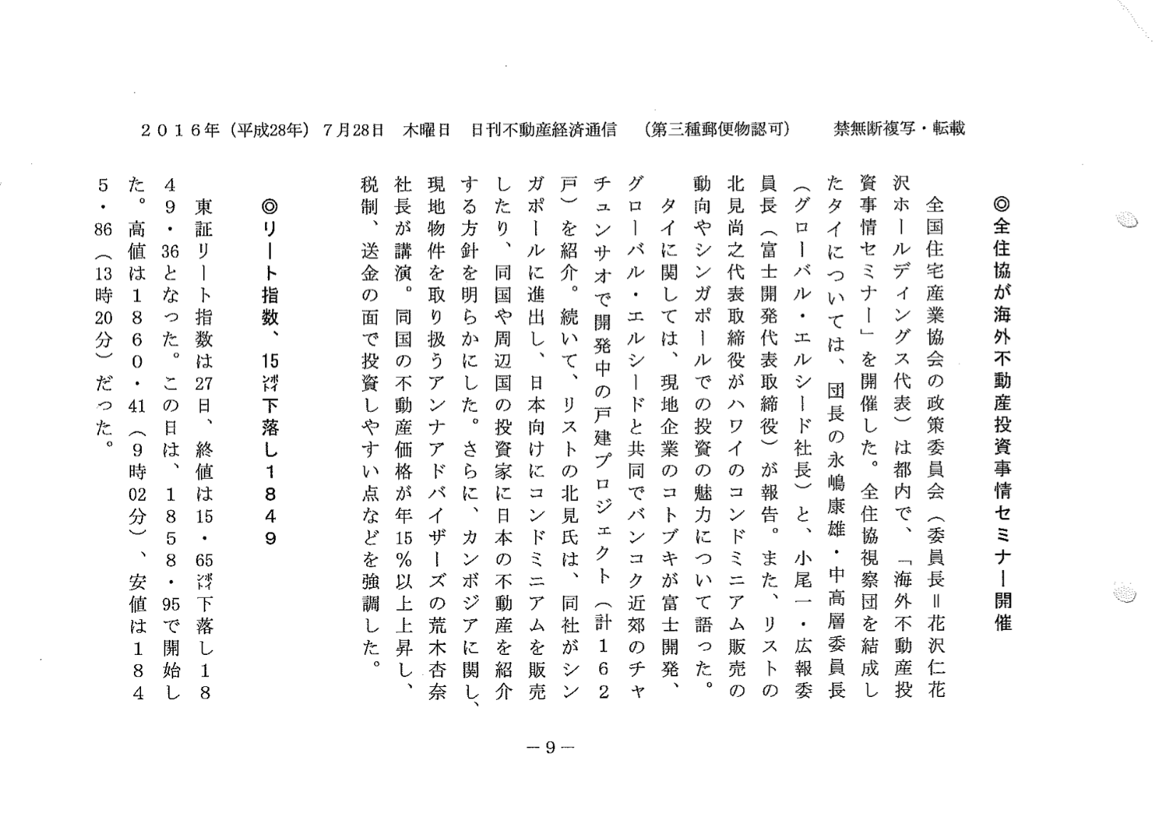 タイ・ハワイ・シンガポール・カンボジアの不動産投資事情など、非常に濃いリアルな話を聞けるという事で、100名限定が満席でした。 タイムリーな話題では、ASEAN外相会議で中国政府とカンボジアの強い関係性があったことからも、カンボジアというキーワードが皆さんの頭の中にあったようで、質問も沢山頂きました。ありがとうございます。 そして、日刊不動産経済通信にセミナーの様子を掲載頂きました。