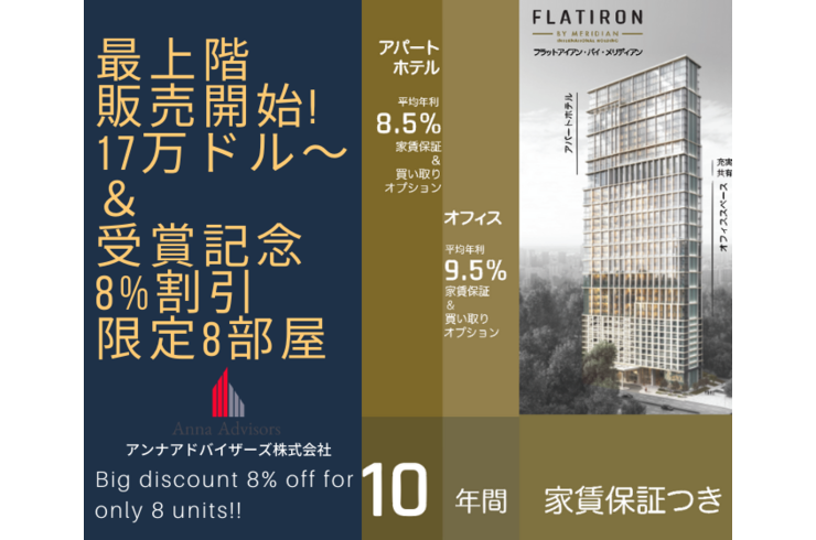 フラットアイアン・バイ・メリディアン(FLATIRON BY MERIDIAN)は、カンボジア首都プノンペン 新興ビジネス中枢エリアに、2021年上半期完成予定のオフィス&アパートホテルを含む複合開発です。最大の魅力は、オフィス物件は、10年間で平均利回り9.5%&買取保証オプションつき、アパートホテル物件は10年間で平均利回り8.5%&買取保証オプションつきの投資案件で、すべて米ドル建てです。
