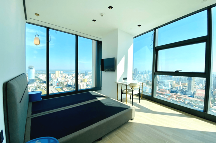 大きな窓からはプノンペンを一望できますね。
