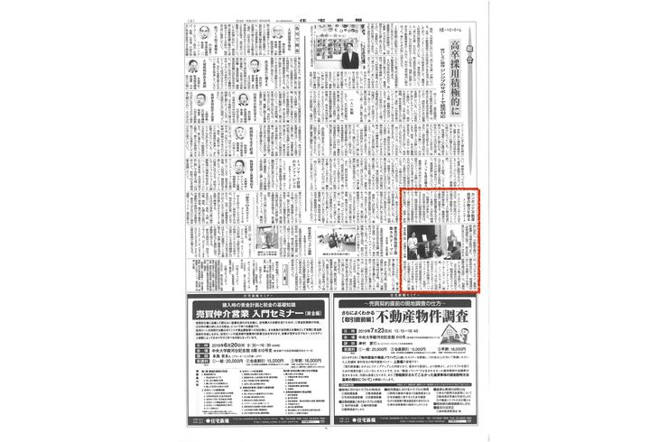 弊社代表の荒木が、6月4日の住宅新報に掲載頂きました。