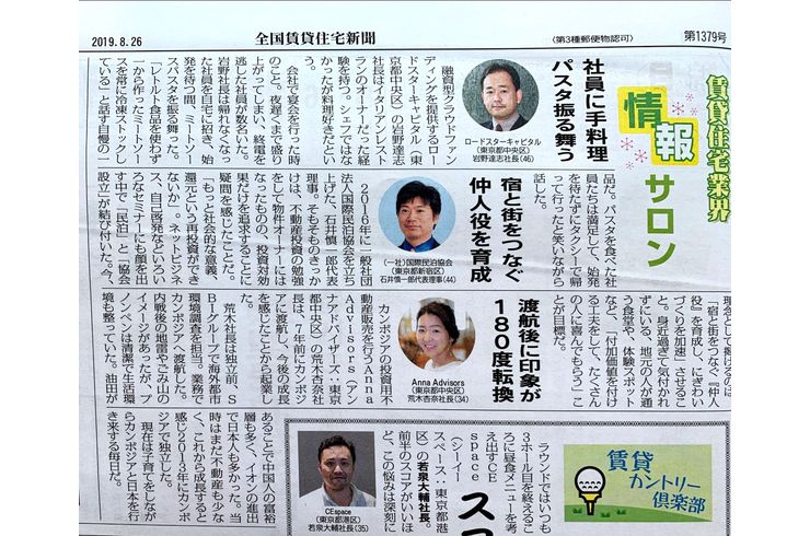 全国賃貸住宅新聞に掲載されました 2019/09 投稿日 2019年9月2日 公開日: 2019/09/02 全国賃貸住宅新聞に弊社代表の荒木が掲載頂きました。 カンボジアで起業し、現在に至るまでインタビューをして頂きました。 宜しければご覧くださいませ。 一覧に戻る 記事をシェア: