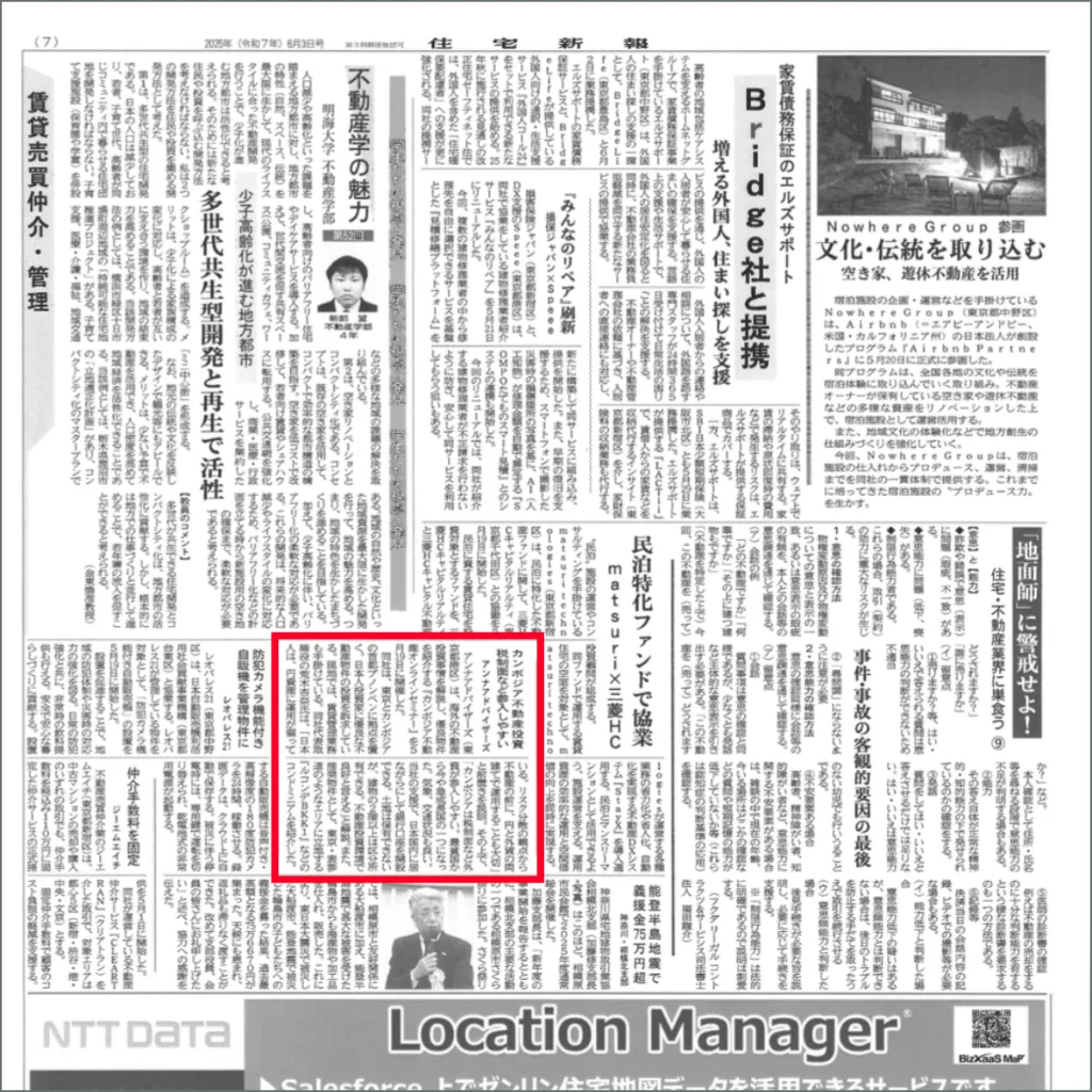 小紙6月3日発行「住宅新報」に、弊社の取り組みが紹介されました。
