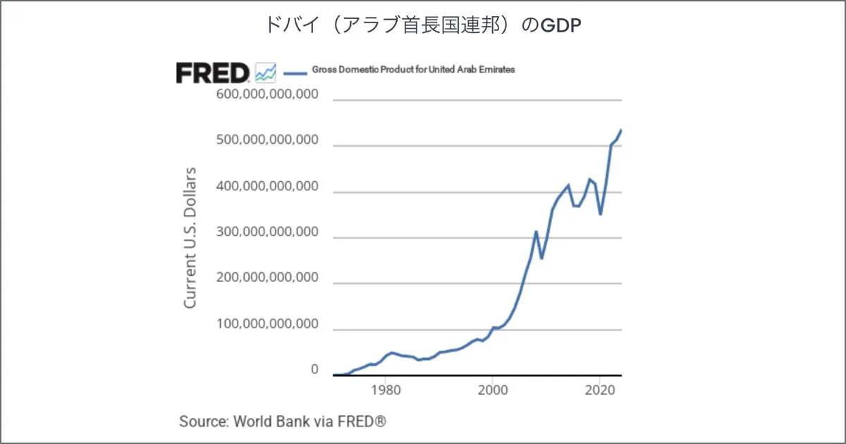 ドバイは2020年以降の国際博覧会の成功やコロナ禍からの早期回復によって、急激にGDPが成長しており、不動産価格も急激に上昇しました。